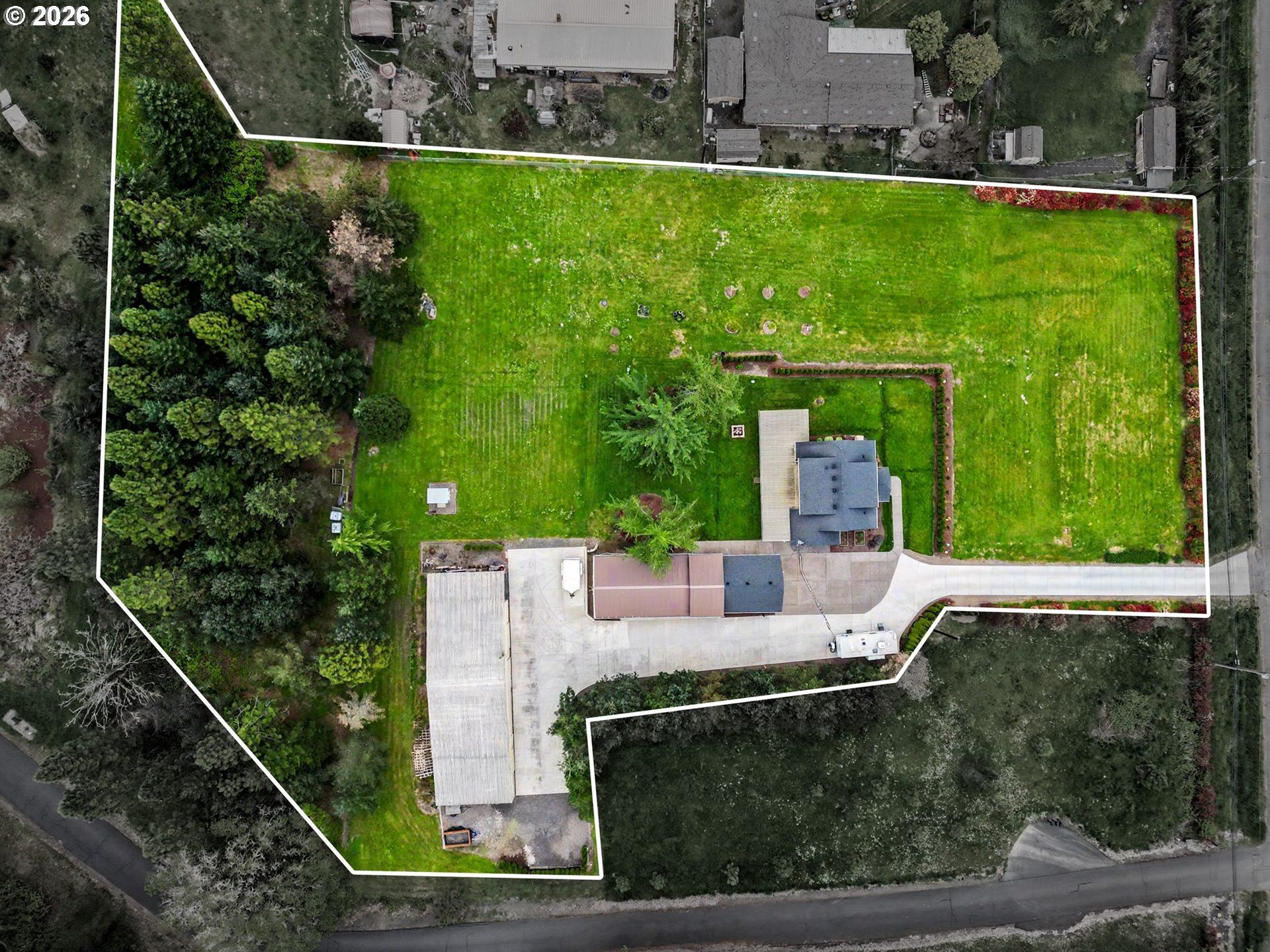 Charming 1939 fully remodeled farmhouse on 2.25 acres. Open floor plan featuring a spacious kitchen with large island/eating bar, honed quartzite countertops, tile backsplash & stainless steel appliances. Main floor living w/ two additional bedrooms & full bath upstairs. Functional unfinished basement adds extra flexibility to this versatile property. Detached two-car garage PLUS two shops (2400 & 960 sq ft). Fully paved driveway and surrounds, large covered patio & seasonal Willamette River views.