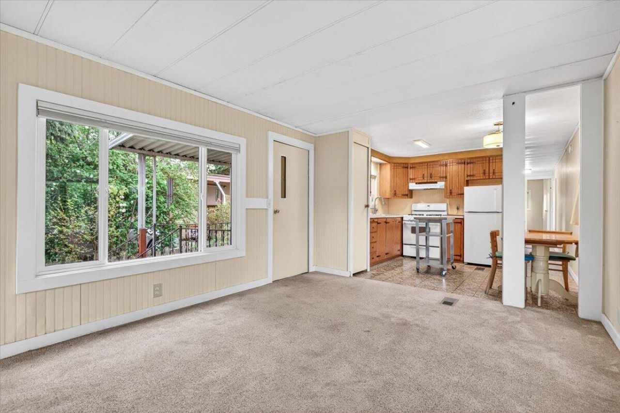 Charming, move-in ready home in a desirable 55+ park! This well-maintained property features an open floorplan with newer carpets (freshly cleaned), fresh interior and exterior paint, updated siding and skirting, vinyl windows and brand-new gutters. Per the park, no immediate maintenance is required for the new owner upon move in. The front bedroom offers great natural light and its own half bath. The primary bedroom is privately located at the back of the home, with an additional bedroom ideal for an office or hobby space. In-unit laundry with washer and dryer included. Enjoy fresh landscaping with beautiful flowers and fruit trees, a covered carport for parking, and a location close to parks, shopping, and easy I-5 access.